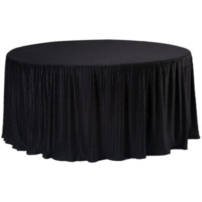 A table cloth made specifically to fit 36″ Round folding Tables. The fabric is enhanced with textured pleats for style, and a full attached skirt dropping to the ground and hiding the legs on the table. So, this table cloth is perfect for holidays and casual gatherings, and even backyard BBQ’s. Because of our skirt’s 29″ drop, you can also use for food presentation. With hidden storage directly under the table, drinks, tableware, anything needed to be replenished, is easily at your disposal.